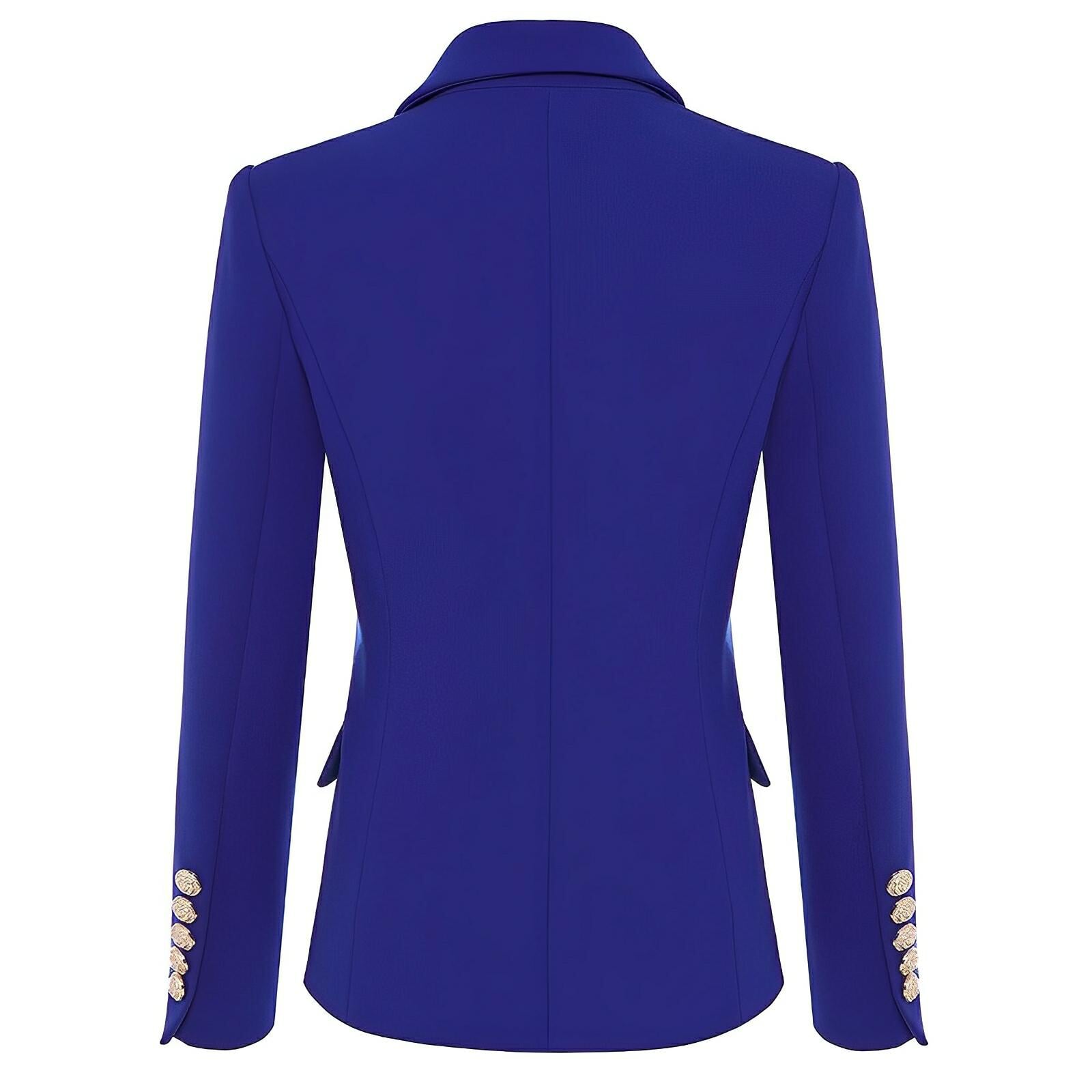 This tailored double-breasted blazer features a classic lapel collar, and is adorned with polished metal buttons, exuding a sophisticated aesthetic. The fit is structured, providing a flattering shape that can be dressed up for formal occasions or down for a smart-casual look. Command attention.