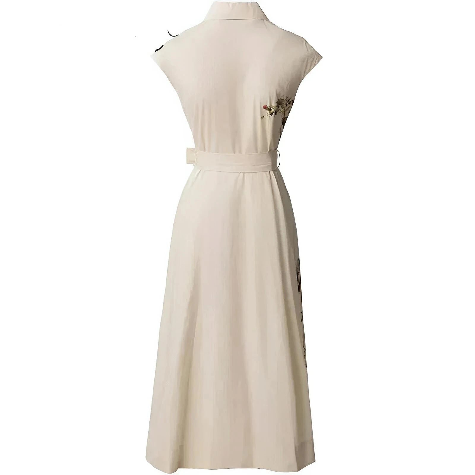 This elegant sleeveless dress offers a soft and versatile foundation for various occasions. The skirt flows gracefully, with pleats adding movement and depth to the overall design. Perfect for a soiree or formal event, this dress effortlessly combines style with comfort. Be timeless.