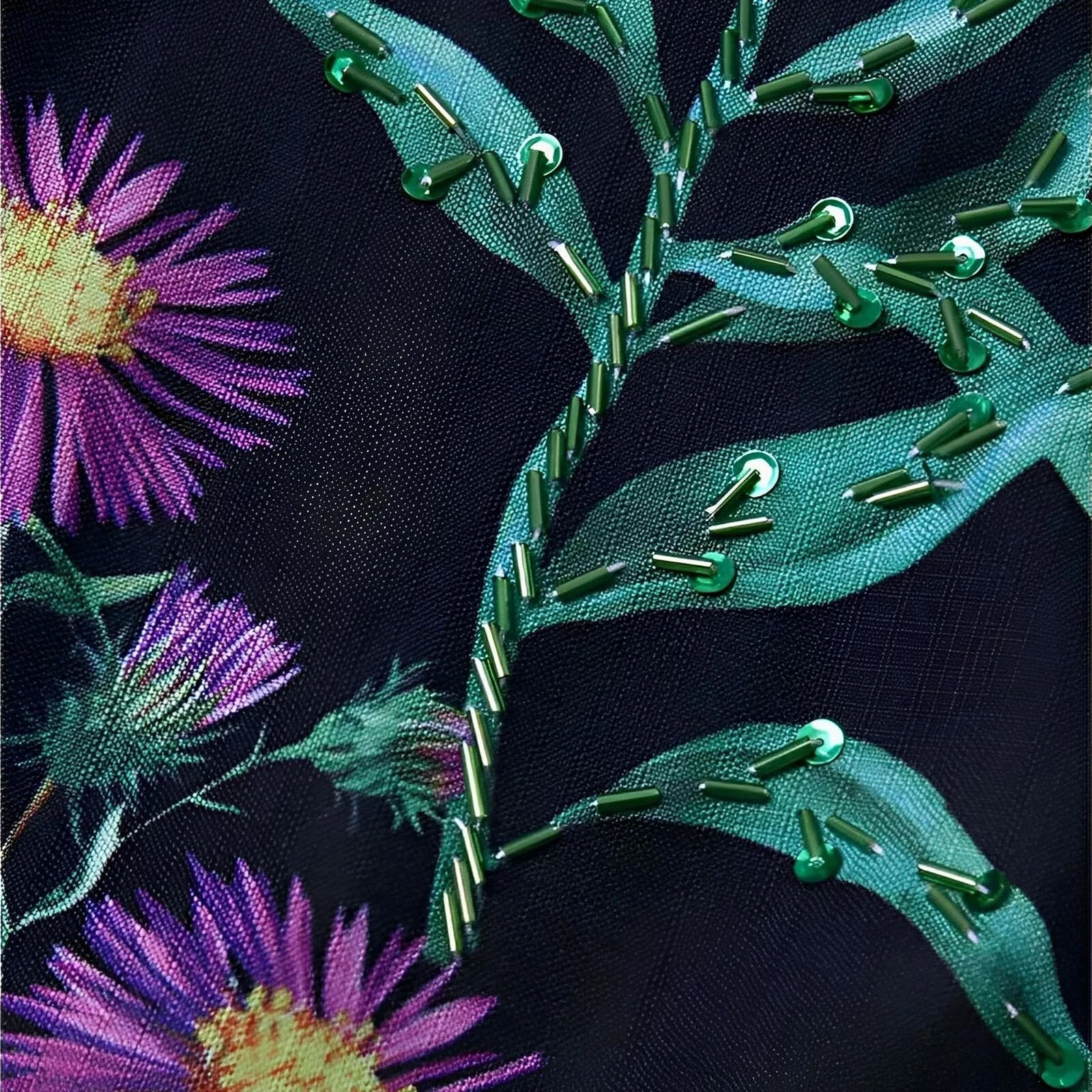 This lantern-sleeve dress features soft and flowing fabric, adorned with intricate florals for a vibrant, yet elegant touch. The skirt flows gracefully, with ruched detailing adding movement and depth to the overall design. The mid-length cut provides versatility, making it suitable for various occasions, from casual gatherings to formal events. Leave a lasting impression.