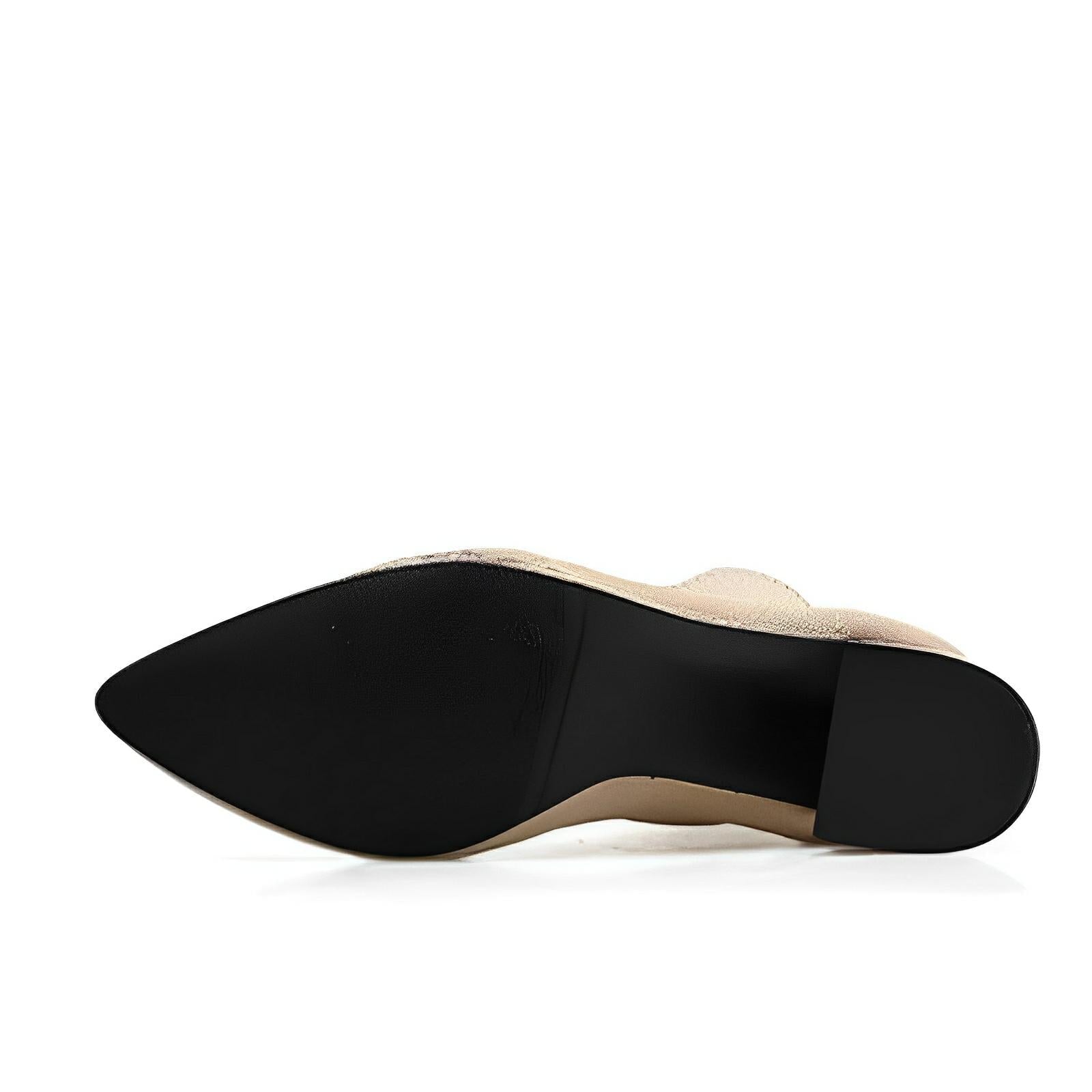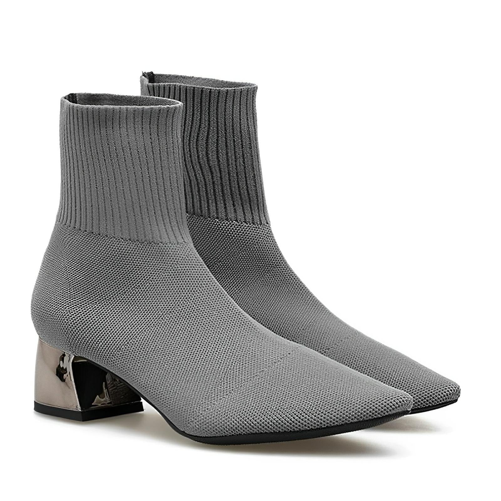 This knitted ankle boot features a pointed toe design, and a sleek, fitted silhouette. The boot has an accent block heel with a sophisticated outline, providing modern flair while maintaining stability. This luxurious footwear choice is perfect for making a statement in both casual and formal settings. Own every moment.