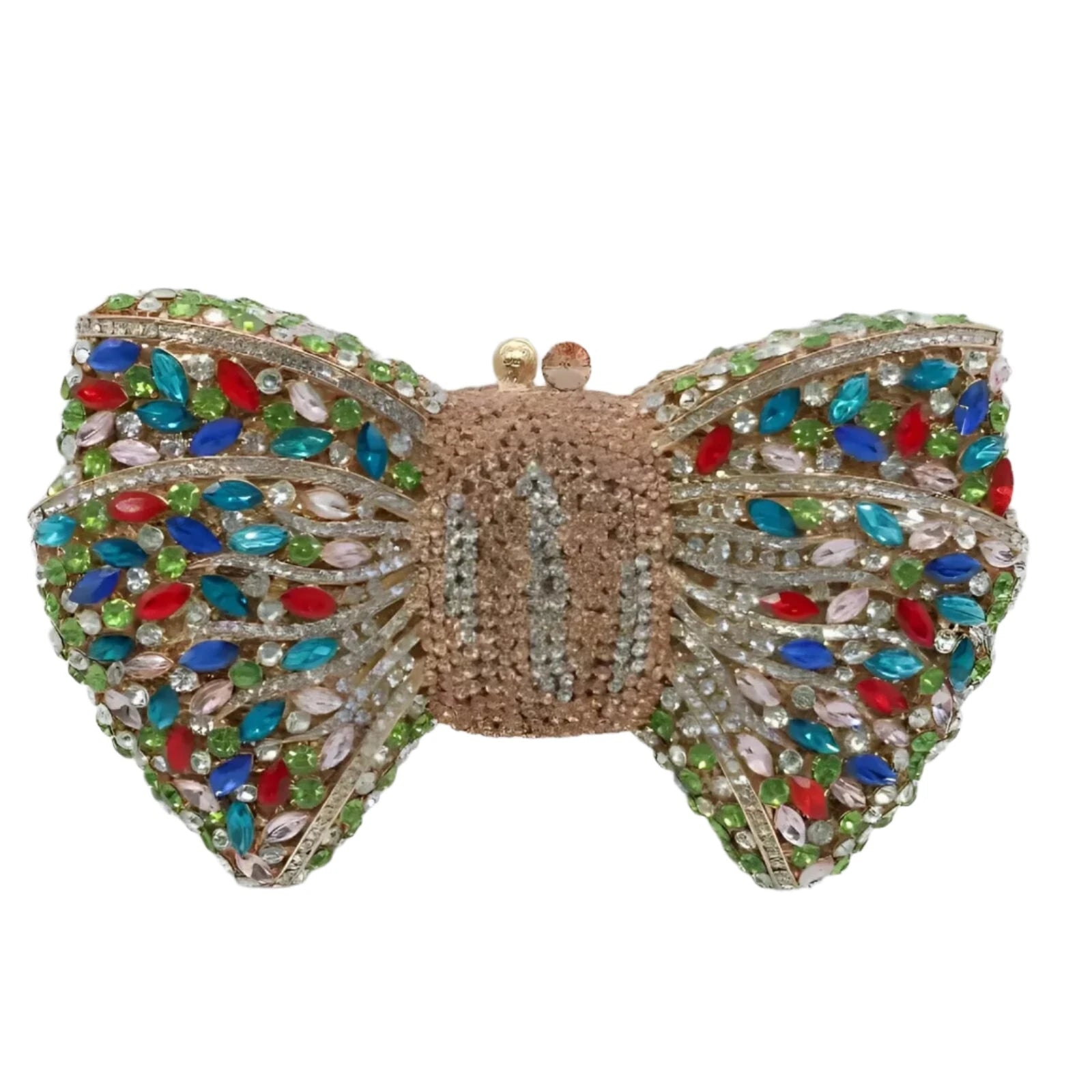 Indulge in luxury. Elevate your style with the Bow Tie Rhinestone Clutch.