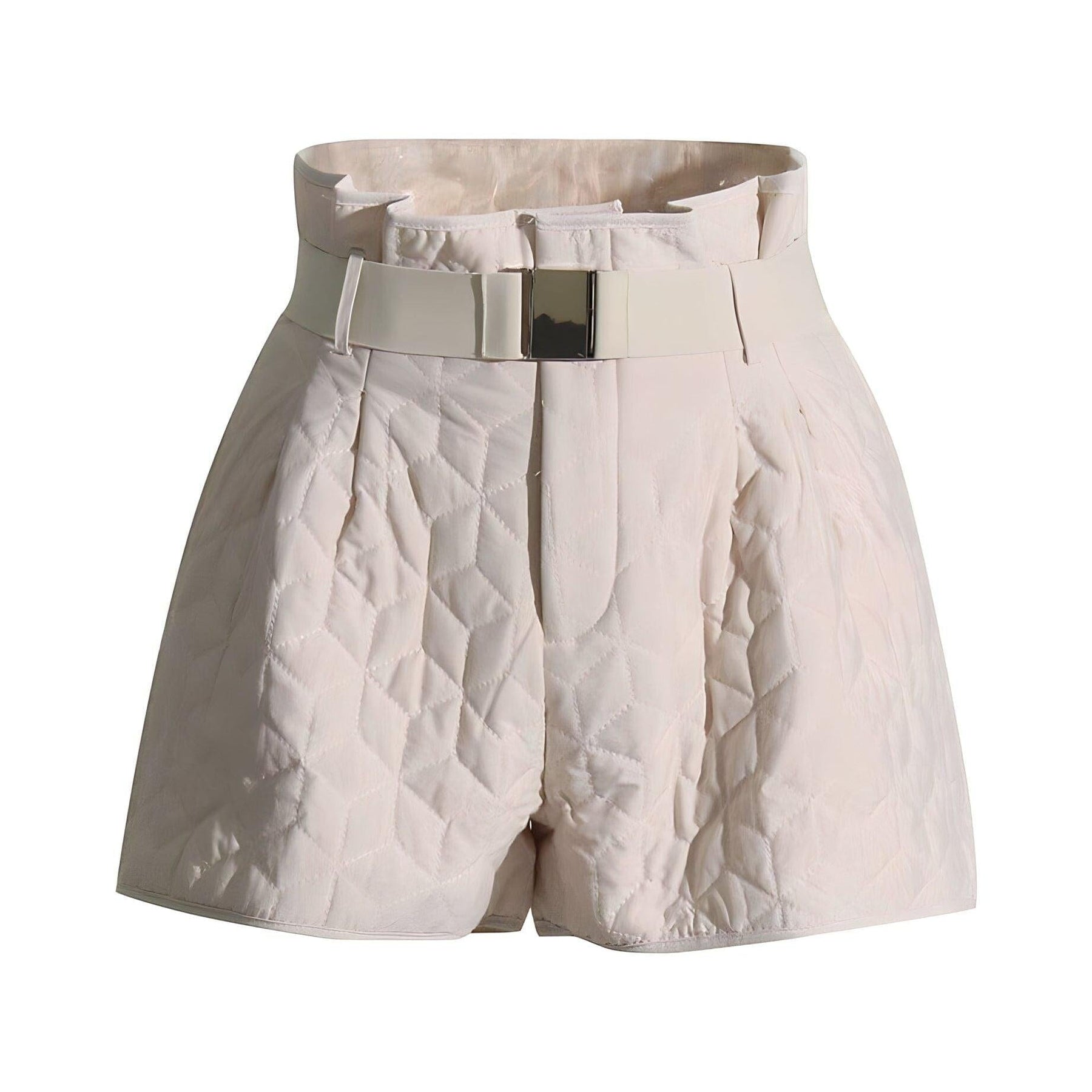 High-waisted shorts featuring a tailored silhouette that offers a chic and modern appearance. These bottoms are crafted from a lightweight, quilted fabric, enhancing comfort and breathability. Ideal for smart-casual outings or summer events, these shorts can be easily dressed up or down depending on the occasion. Be exclusive.