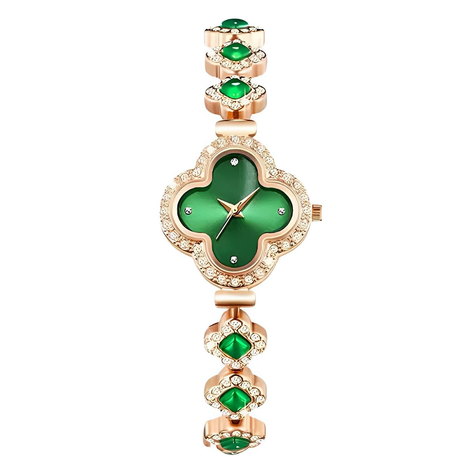 This exquisite timepiece features a stunning 'clover' design encrusted with shimmering stones, creating a sparkling effect. Ideal for special occasions or as a statement piece in casual wear, this watch combines artistry and sophistication, making it a captivating addition to any collection. Own your allure.