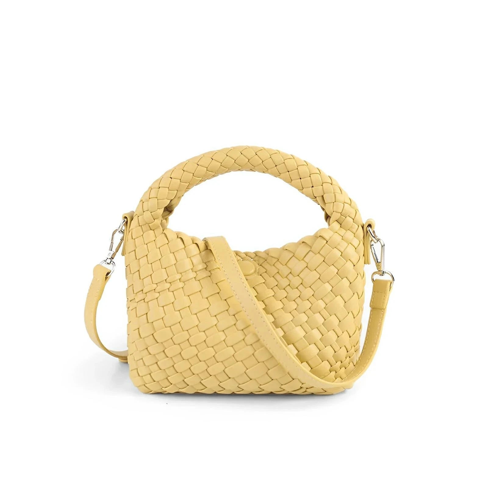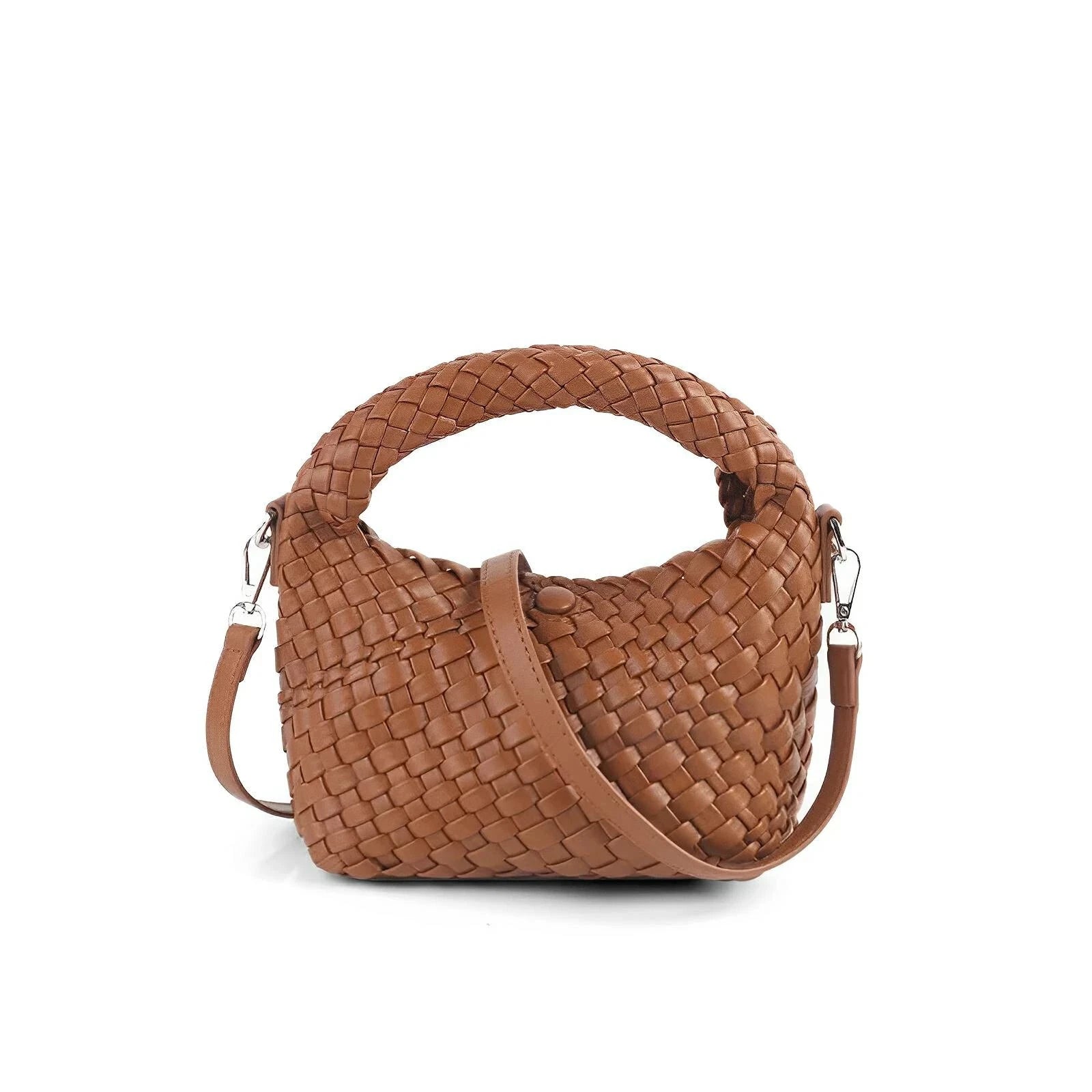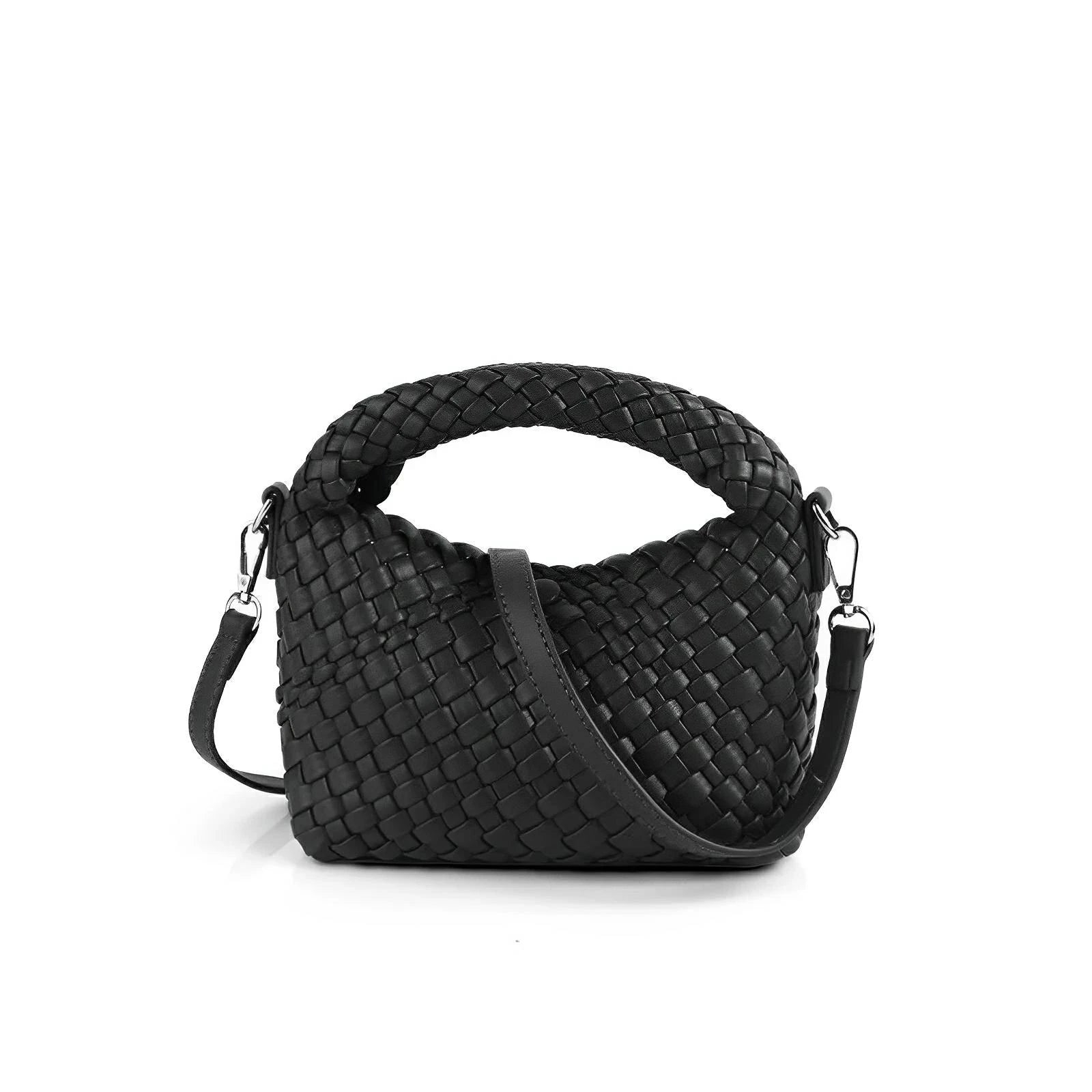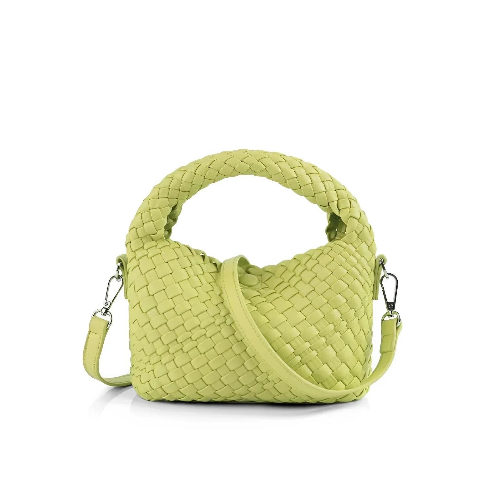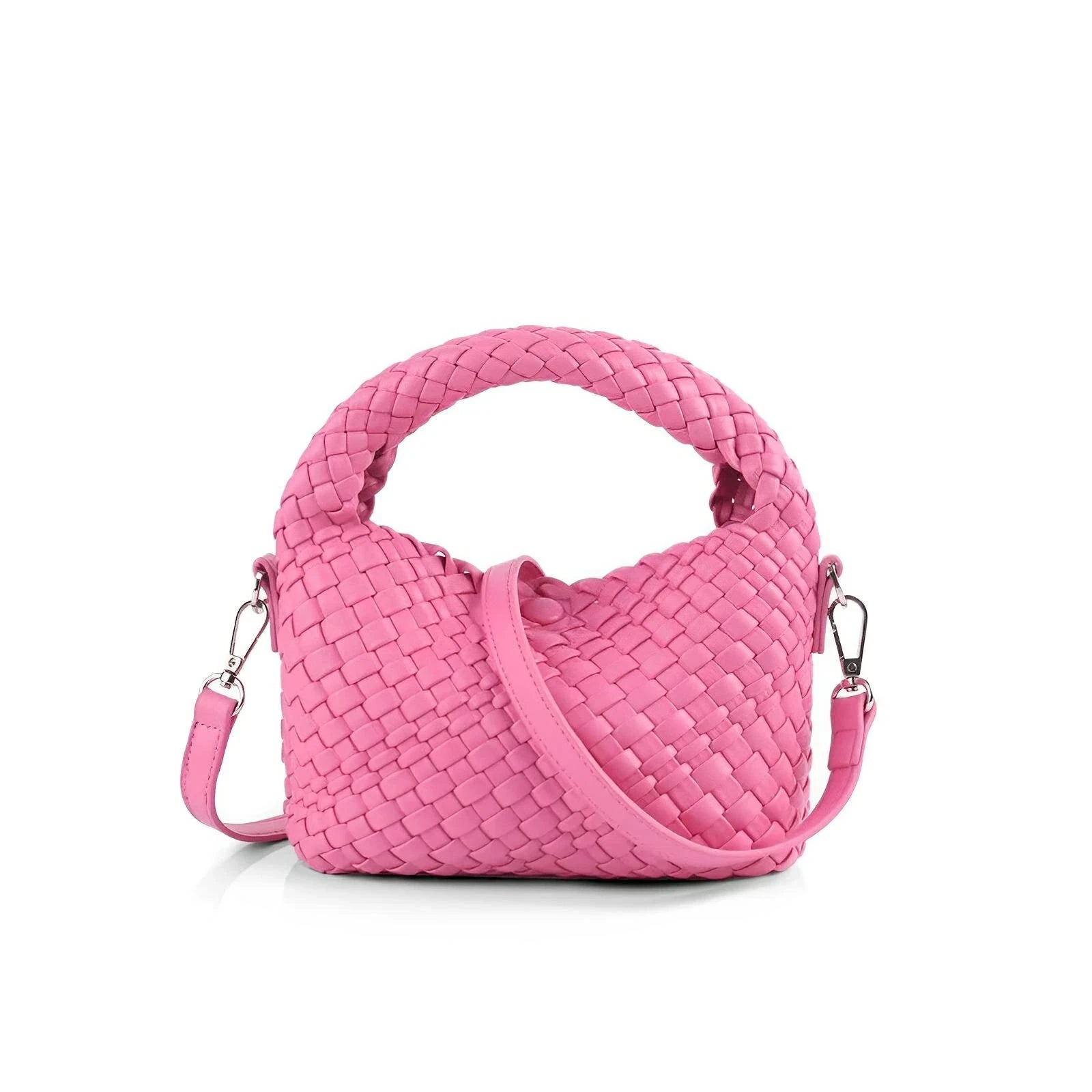 This unique handbag features a sleek, woven exterior that effortlessly exudes elegance. The polished finish of the material gives this piece a refined look, making it suitable for both everyday use and formal occasions. The overall appearance balances contemporary design with classic charm, appealing to those who appreciate modern luxury. Be exclusive.