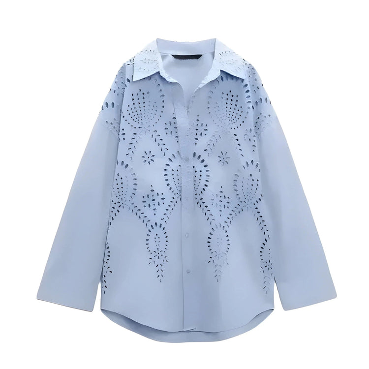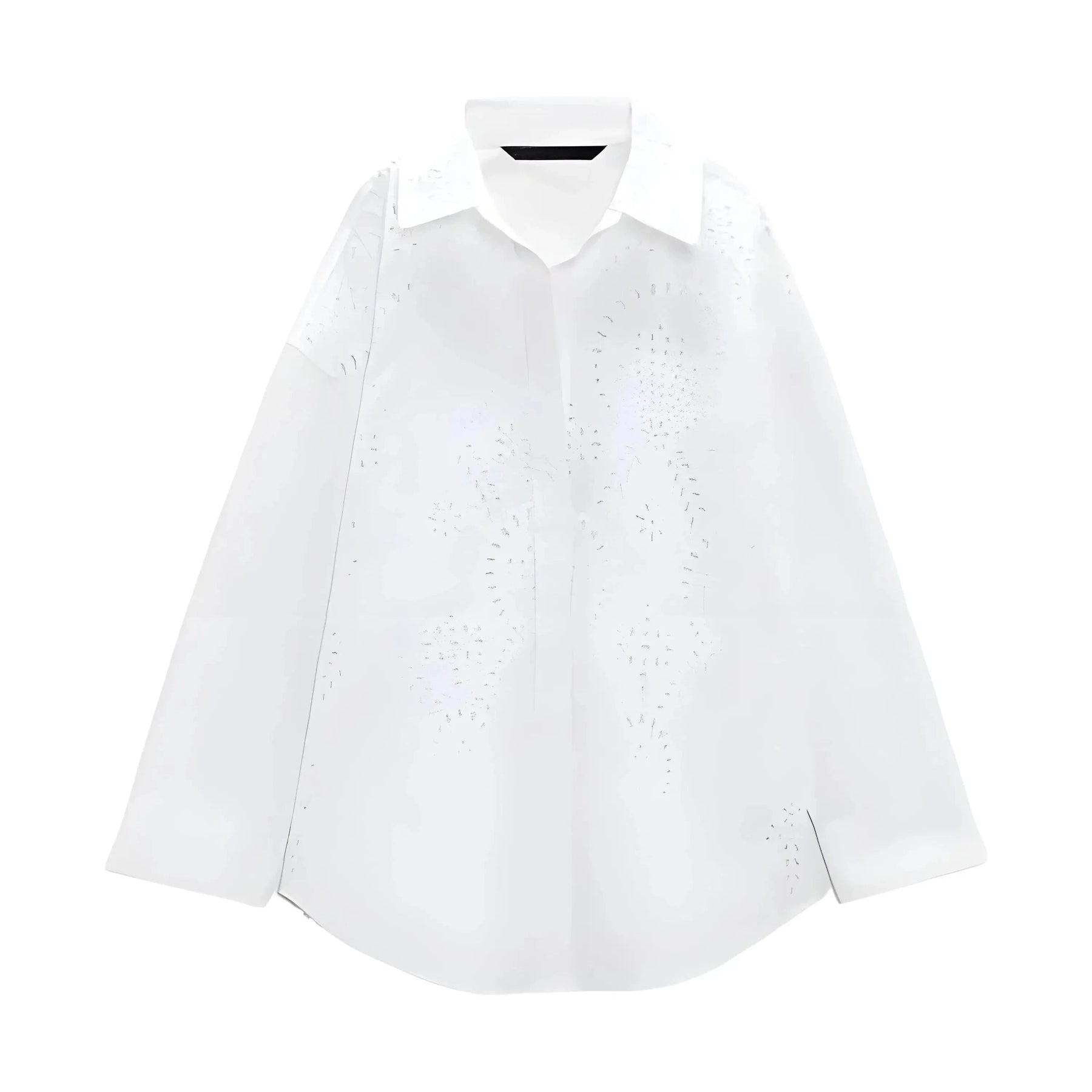 Indulge in luxury. Elevate your style with the Gwen Perforated Blouse.