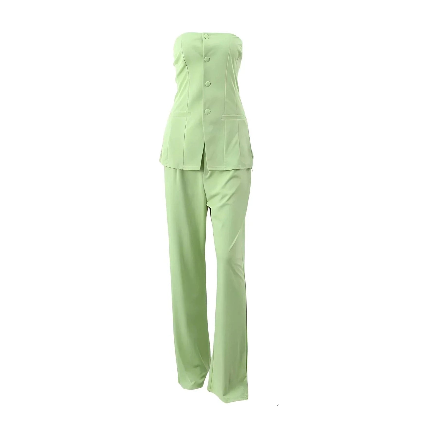 This sleeveless jumpsuit features a structured silhouette with a streamlined fit, exuding effortless sophistication. The design incorporates a premium blend of luxurious fabrics, while the fitted bodice seamlessly transitions into wide-leg trousers that elongate the legs. The overall aesthetic is both modern and chic, making it ideal for formal or fashion-forward occasions. Make your presence known.
