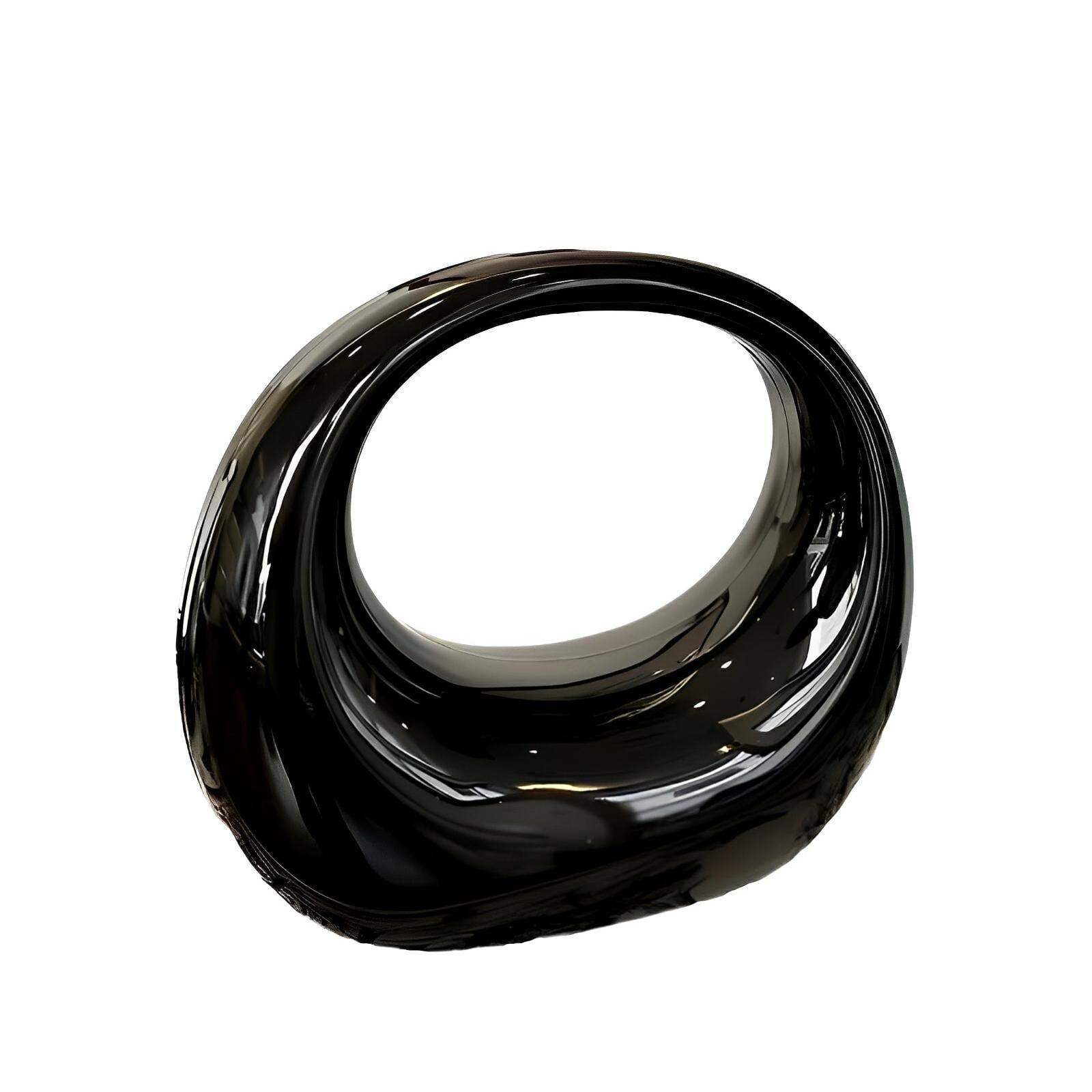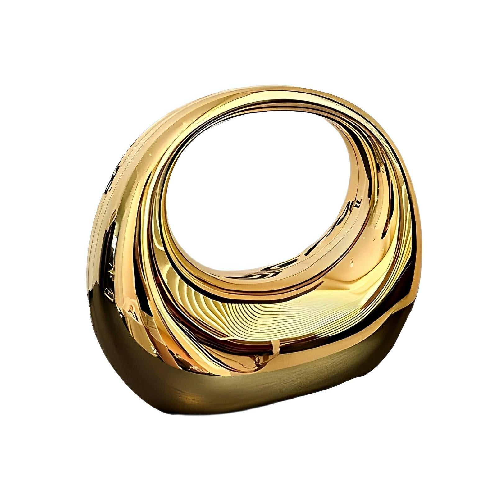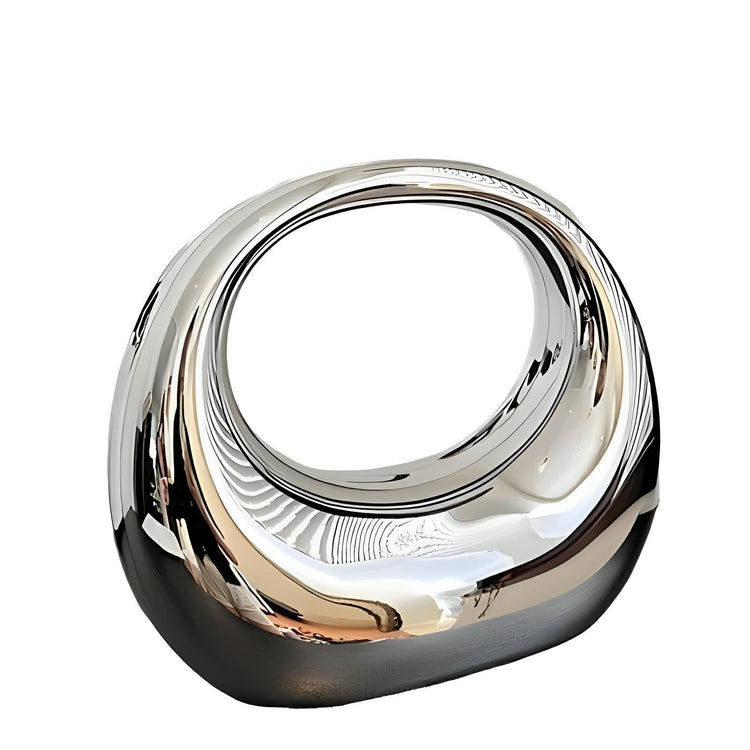 This striking clutch features a captivating design finished with a glossy metallic exterior for a futuristic look. The purse has a structured silhouette, and a discreet clasp closure to ensure secure carry. The overall design exudes an edgy yet sophisticated charm, making it perfect for casual occasions or evening outings. Accessorize your look.