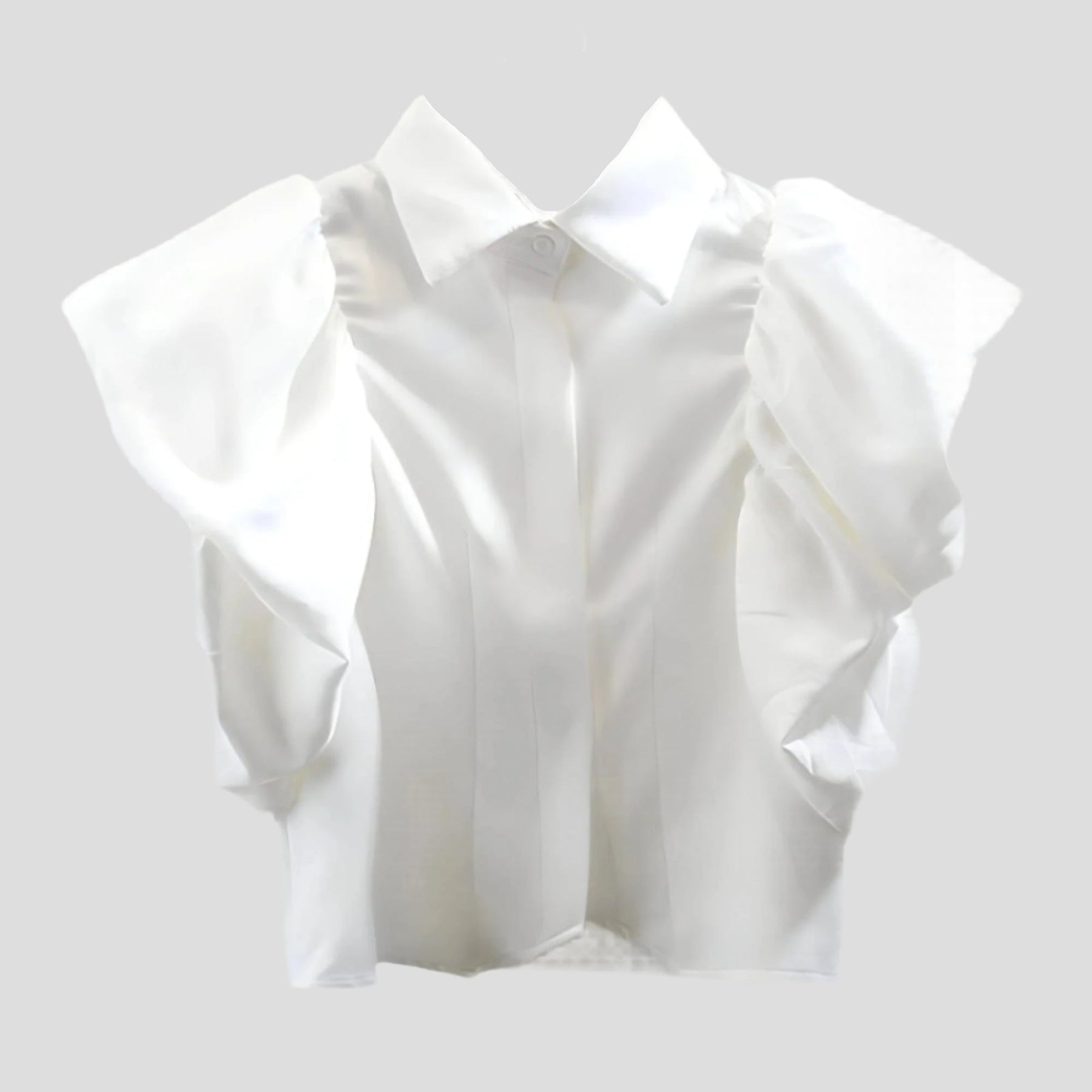 Designed for luxurious comfort and style, this ruffled-sleeve top offers a flattering fit that accentuates your ensemble. Suitable for both casual and semi-formal occasions, this piece pairs beautifully with tailored trousers or a sleek skirt for an elegant finish. Embrace your allure.