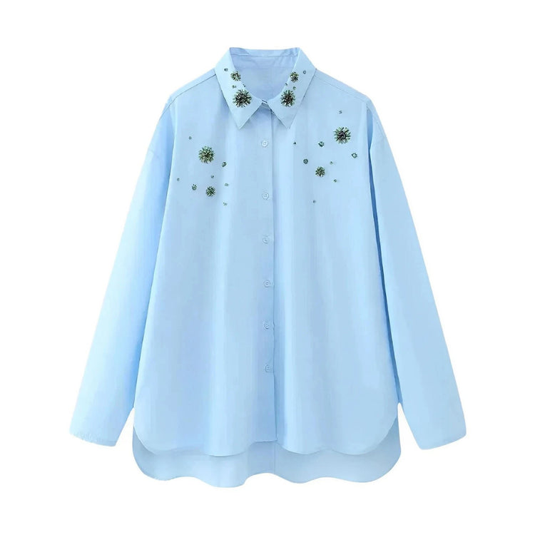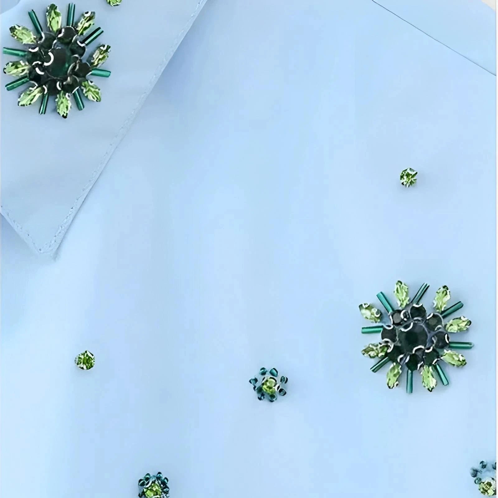Indulge in luxury. Elevate your style with the Oriana Embellished Shirt.