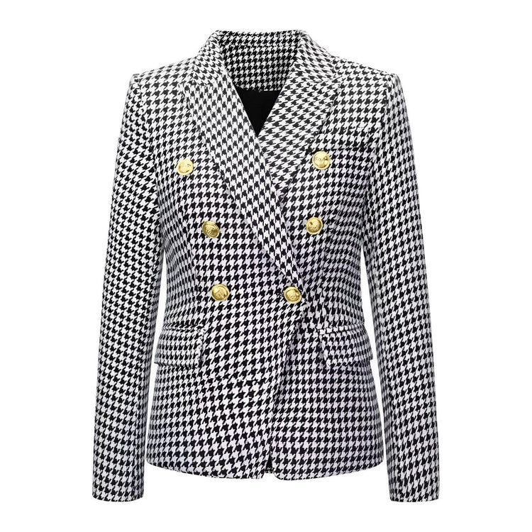 Indulge in luxury. Elevate your style with the Paloma Houndstooth Blazer.