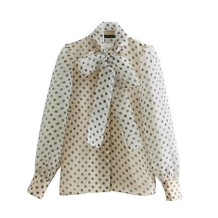 Indulge in luxury. Elevate your style with the Polka-Dot Ribbon Blouse.