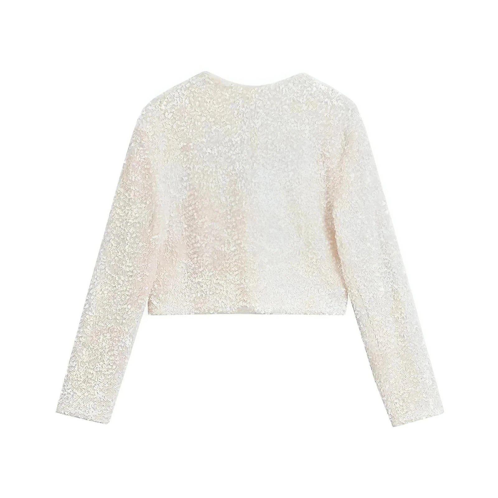 Indulge in luxury. Elevate your style with the Quintessa Cropped Sequin Jacket.