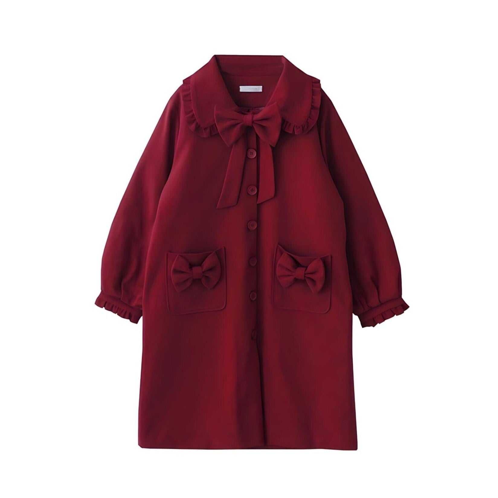 This elegant coat features a tailored silhouette with an accent collar and a full button front. It is adorned with intricate detailing, creating a romantic and captivating design. The overall fit is structured yet flowing, giving it a sophisticated and eye-catching appearance perfect for formal or fashionable casual occasions. Make a statement.